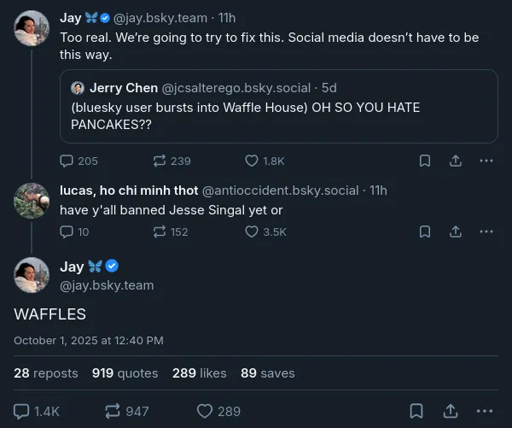 They recommend people other american centralized social media as an alternative to Bluesky in response to this, yet again. When are they going to learn?